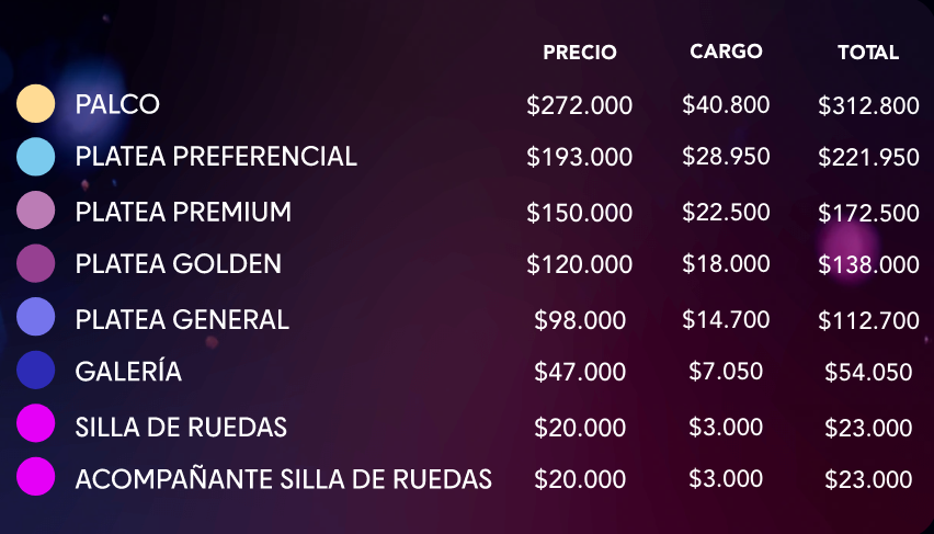 Este miércoles 26 de noviembre comenzó la preventa de las entradas para el festival más importante de Sudamérica, el cual tiene valores que varían desde los $54.050 hasta los $312.800. Serán 3000 entradas para aquellos que compren con Preventa Entel y la misma cantidad para aquellos que sean parte de la Preventa Santander.